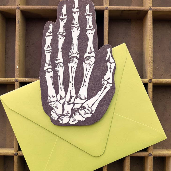 Letterpress printed in black ink on cotton paper and die cut in-house